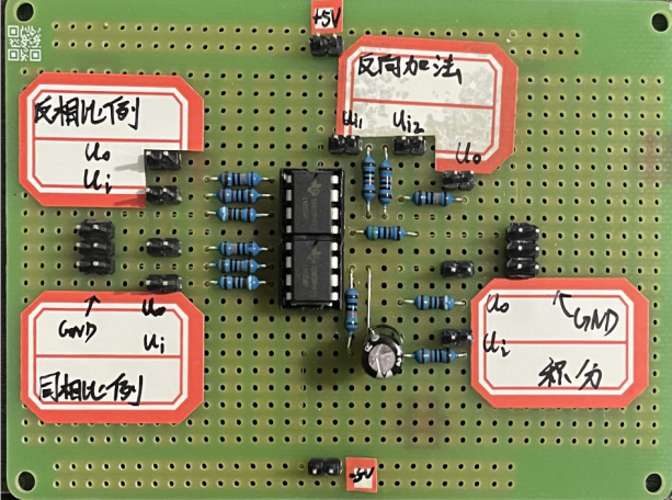 根据所设计的运算电路在模电实验洞洞板2号板焊接电路并调试。