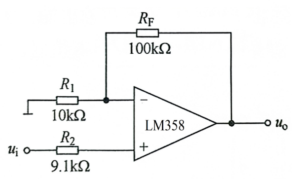 同相比例运算电路如图10所示,电路引入电压串联负反馈。根据“虚短”和“虚断”原则,函数关系式为: