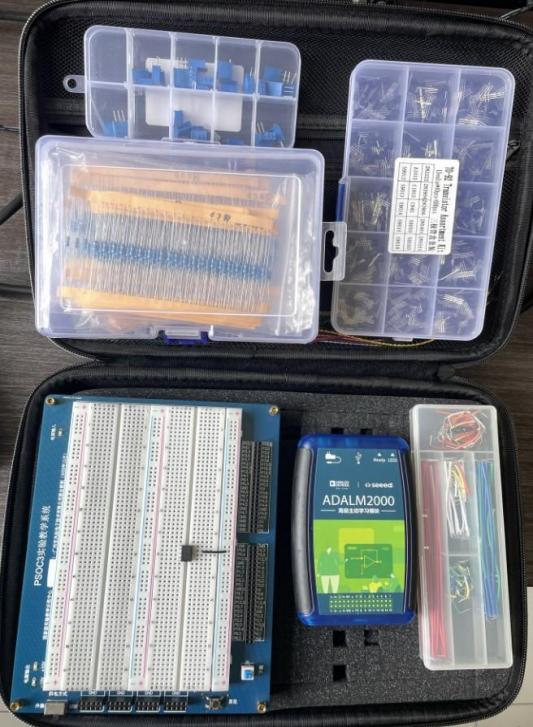 3)基本实验仪器或便携式电子技术实验包(包括 ADALM2000 虚拟信号分析仪、自主研发的 PSOC 实验教学系统板、模电实验洞洞板 2 号板、导线等);