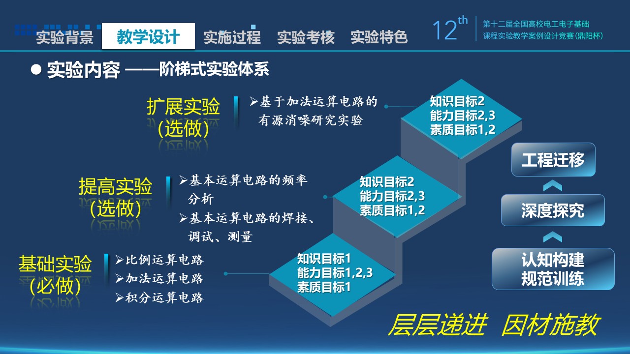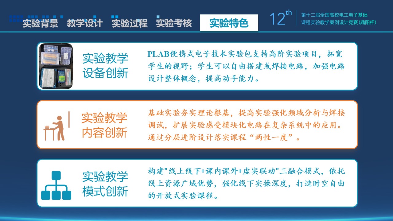 基础实验夯实理论根基,提高实验强化频域分析与焊接调试,扩展实验感受模块化电路在复杂系统中的应用。通过分层进阶设计落实课程“两性一度”。