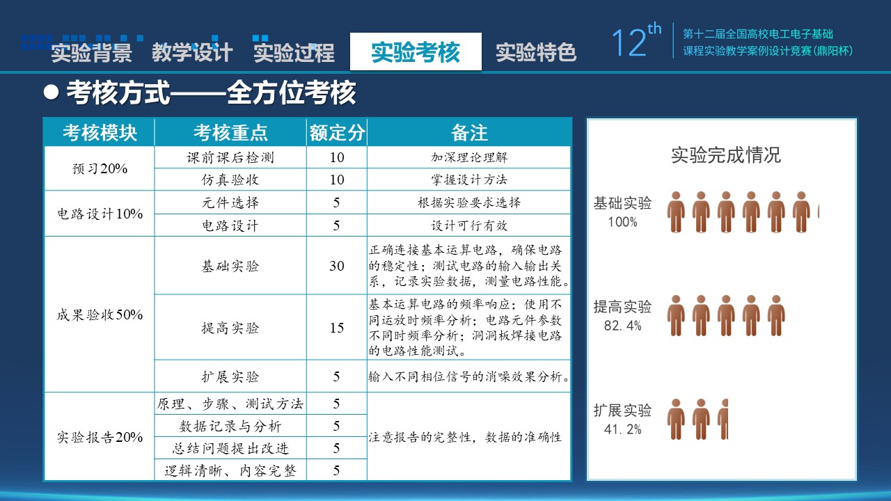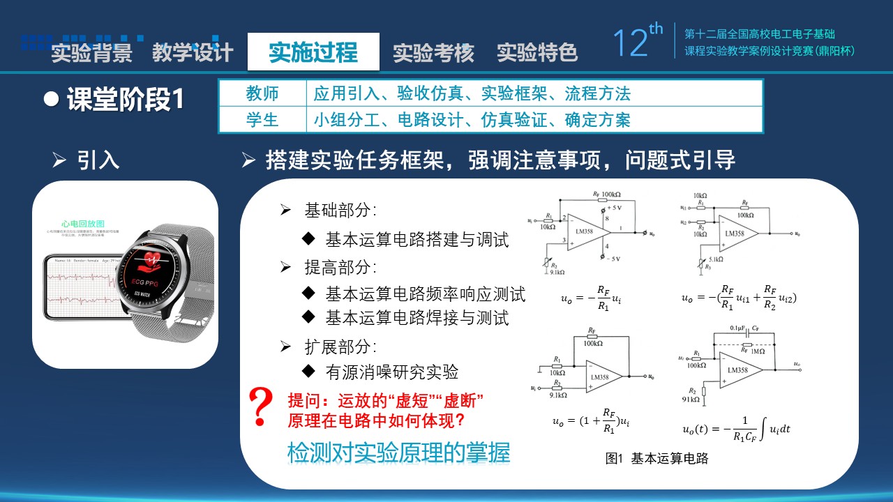 | 成果验收50% | 基础实验 | 30 | 正确连接基本运算电路,确保电路的稳定性;测试电路的输入输出关系,记录实验数据,测量电路性能。 |