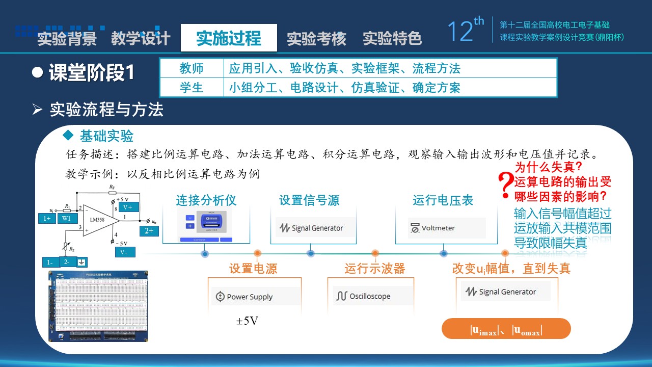 2)能力目标:掌握面包板搭建基本运算电路的技能;掌握常用实验仪器仪表的使用,熟悉虚拟仪器ADALM2000使用;学会实验数据采集、分析、处理、解析和总结的方法。