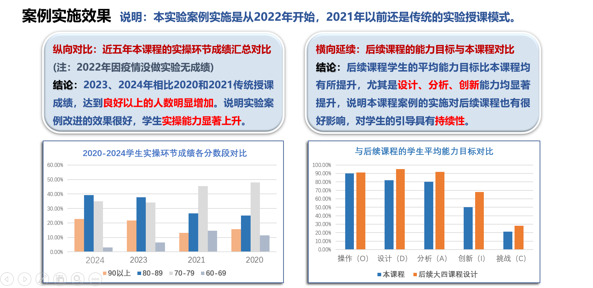 图11.3 案例实施近五年成绩对比及对后续课程持续影响效果对比